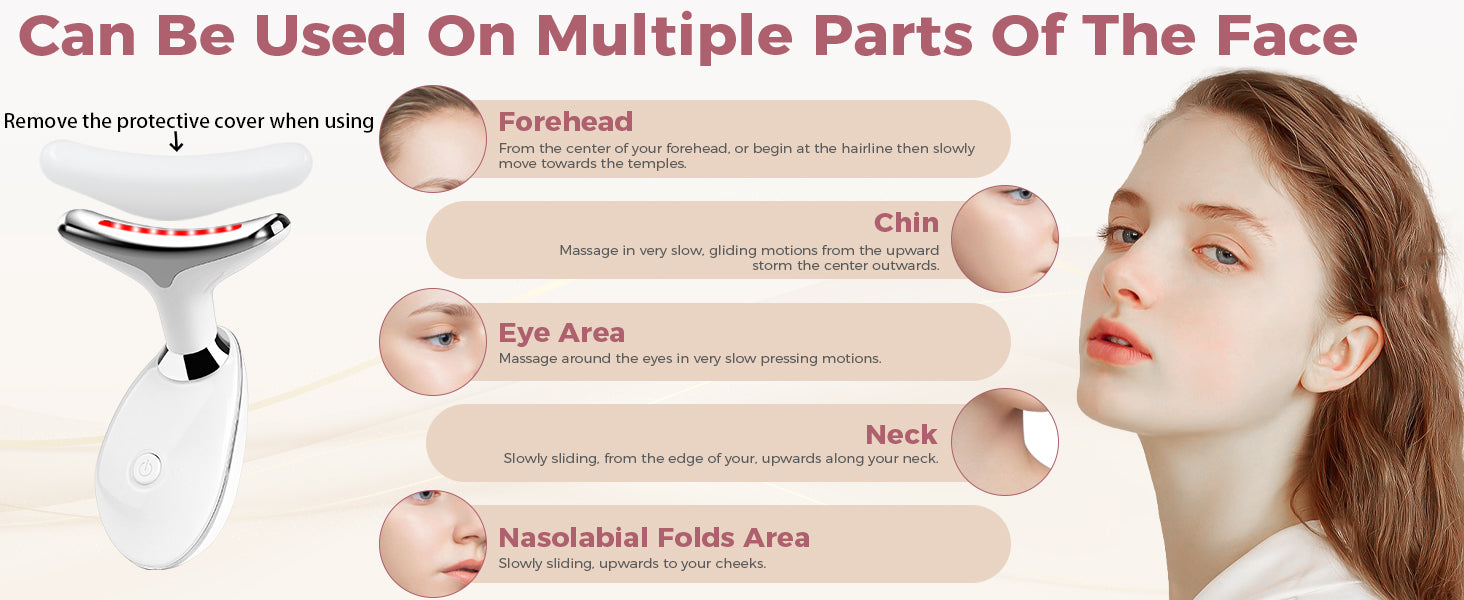 - [7-in-1 Red Light Therapy] This face neck massager has 7 different LED light modes and 3 massage modes that are suitable for massaging the face and neck. Red light: Treatment of full-face wrinkles.